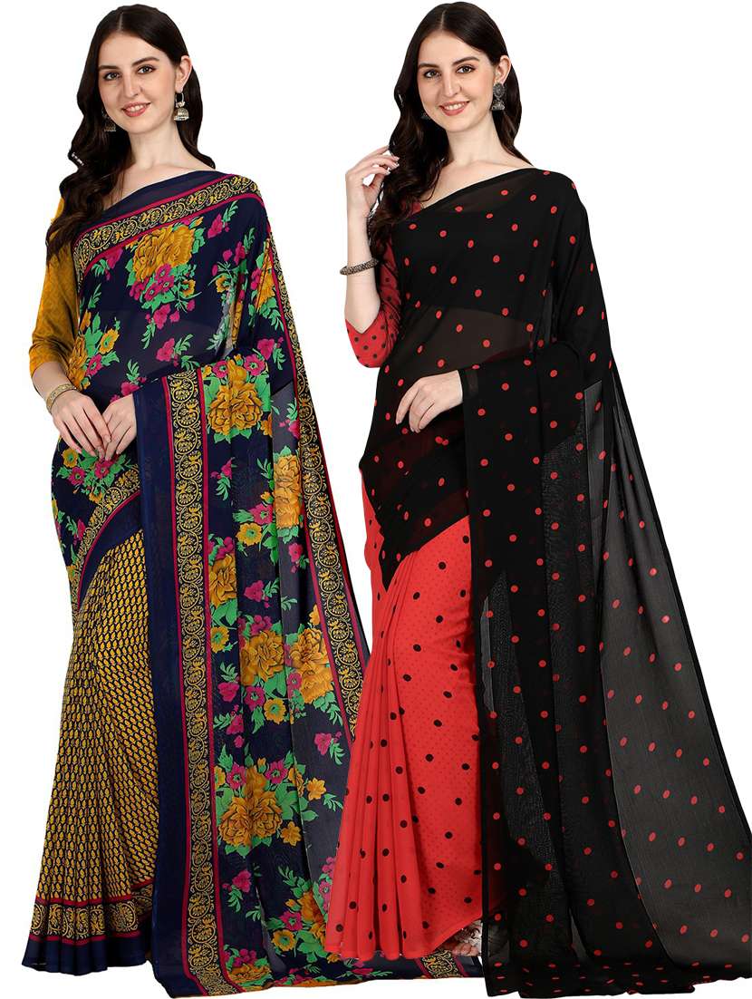 women pack of 2 casual wear combo sarees with blouse