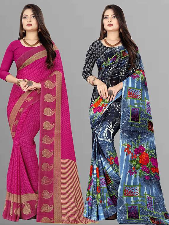 women pack of 2 casual wear combo sarees with blouse - 21474037 - Very Small Image - 1