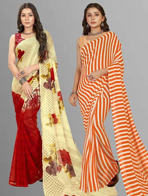 women pack of 2 casual wear combo sarees with blouse - 21474081 - Very Small Image - 1