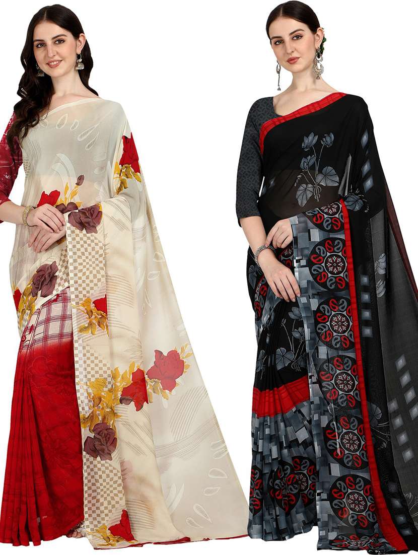 women pack of 2 casual wear sarees with blouse - 21474156 - Very Small Image - 1