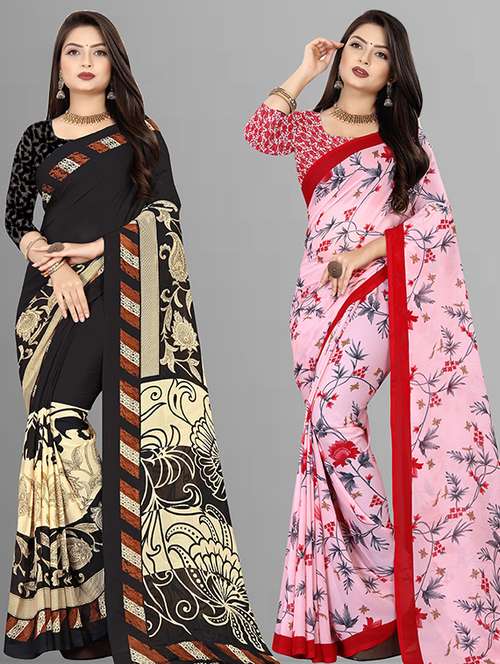 women pack of 2 casual wear sarees with blouse - 21474186 - Very Small Image - 1
