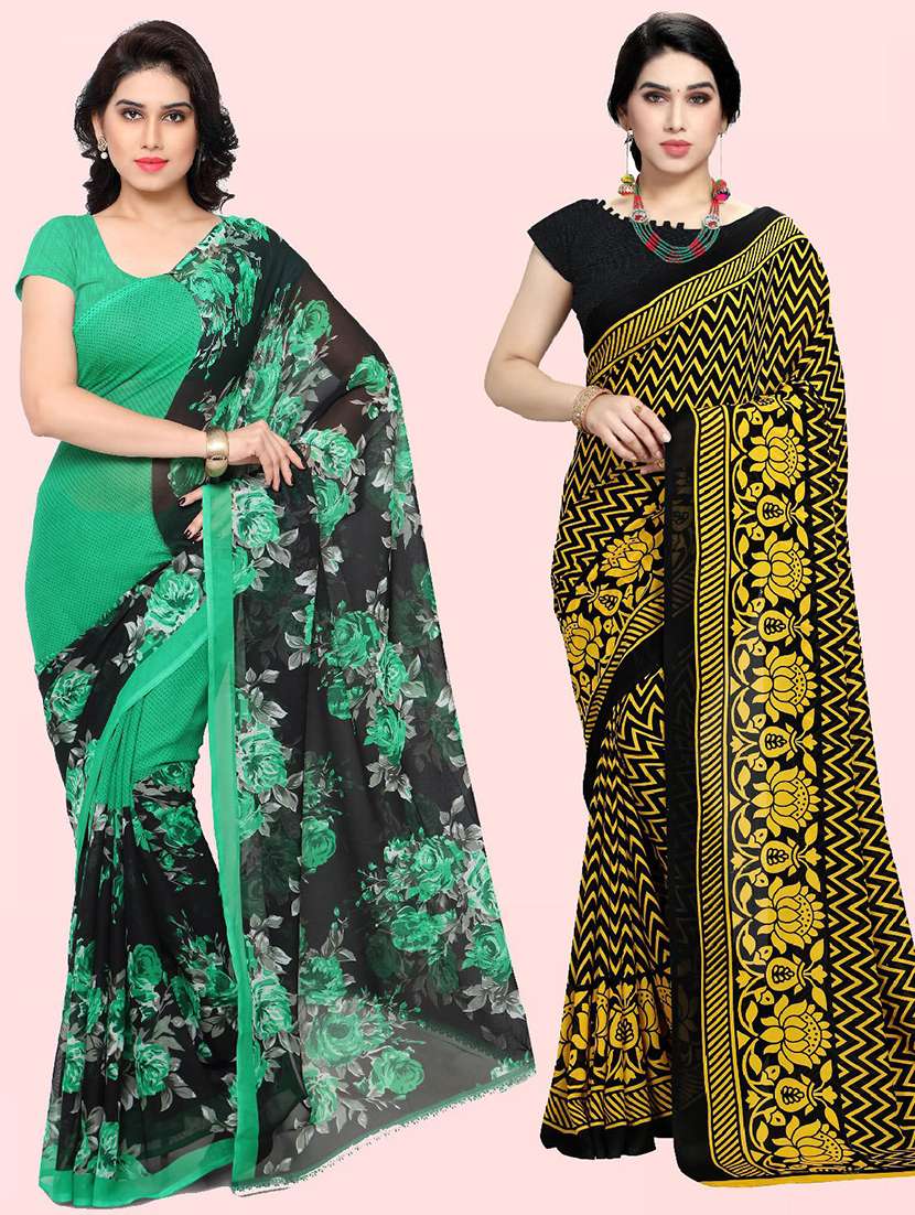 women pack of 2 casual wear sarees with blouse