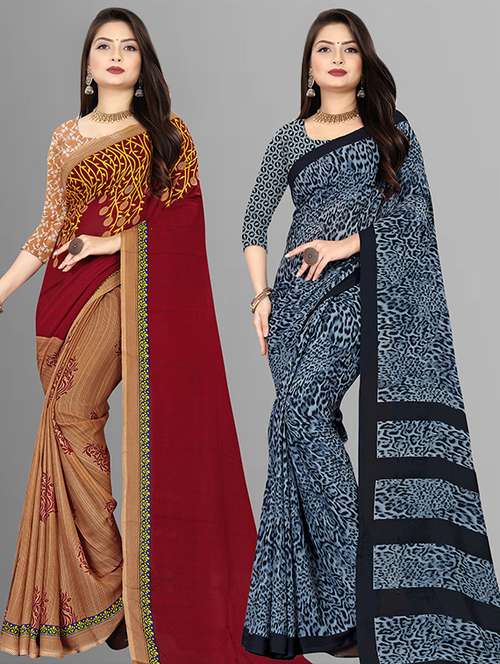women pack of 2 casual wear sarees with blouse - 21474202 - Very Small Image - 1