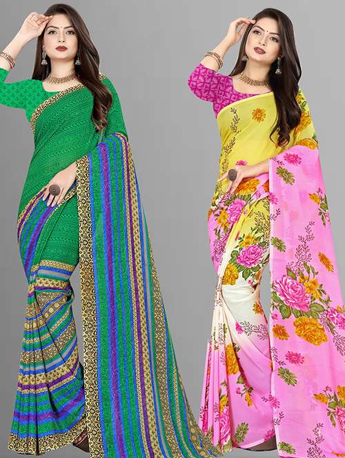 women pack of 2 casual wear sarees with blouse
