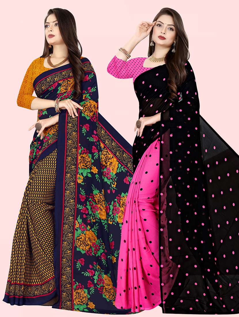 women pack of 2 casual wear sarees with blouse