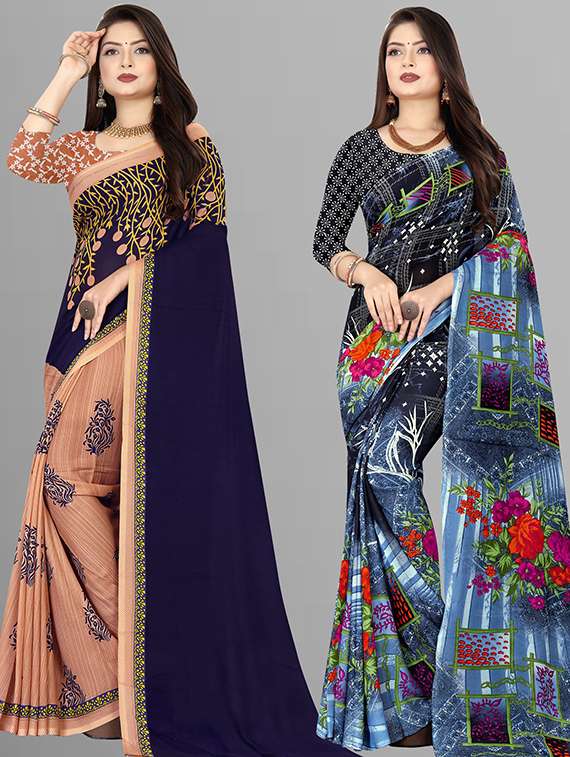 women pack of 2 casual wear sarees with blouse