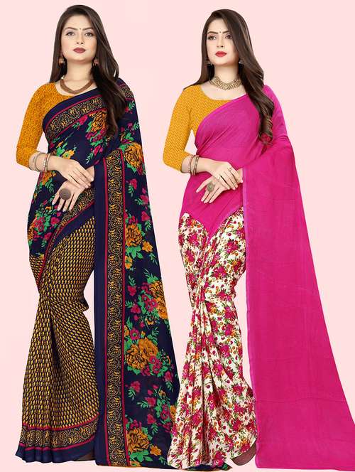 women pack of 2 casual wear sarees with blouse