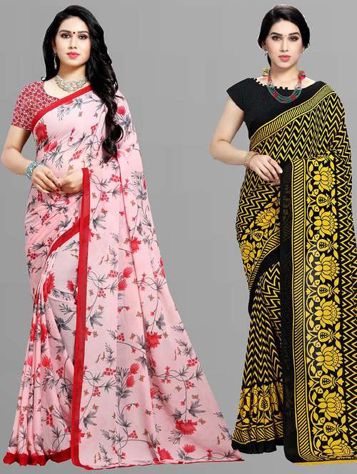 women pack of 2 printed casual wear saree with blouse