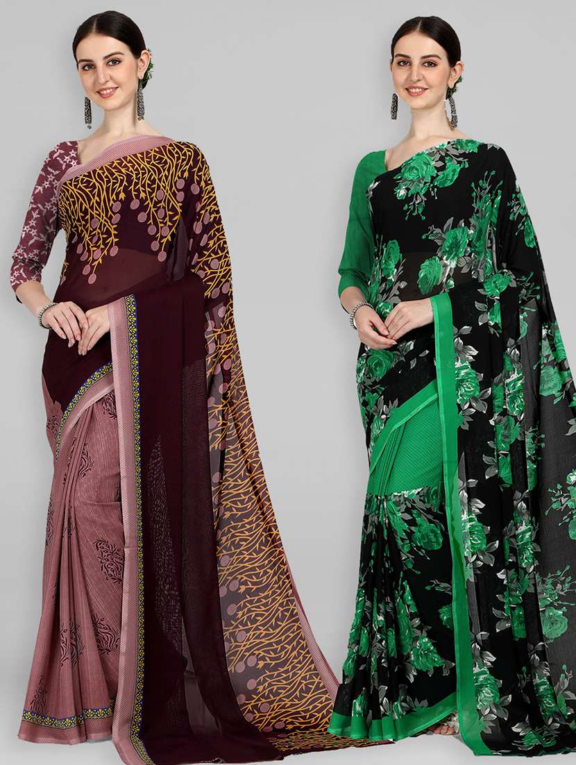 women pack of 2 printed casual wear saree with blouse