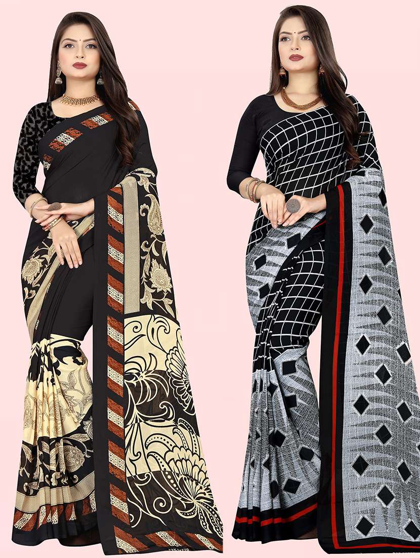 women pack of 2 printed casual wear saree with blouse