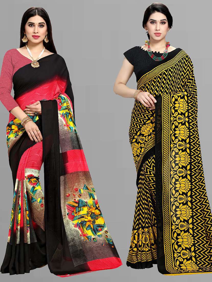women pack of 2 printed casual wear saree with blouse