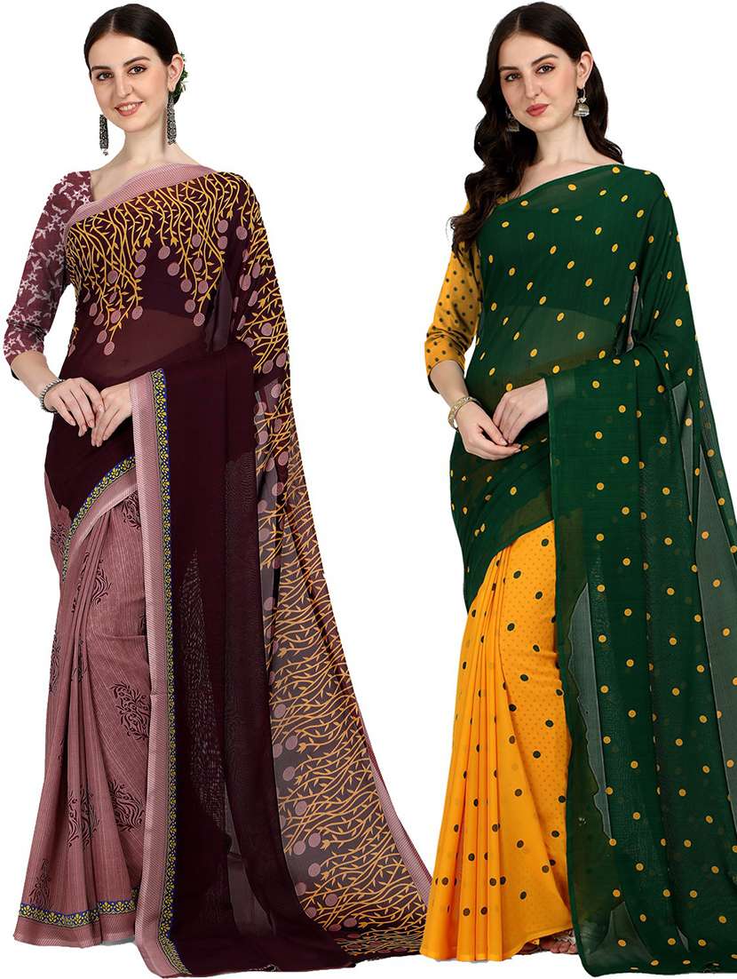 pack of 2 casual wear combo sarees with blouse