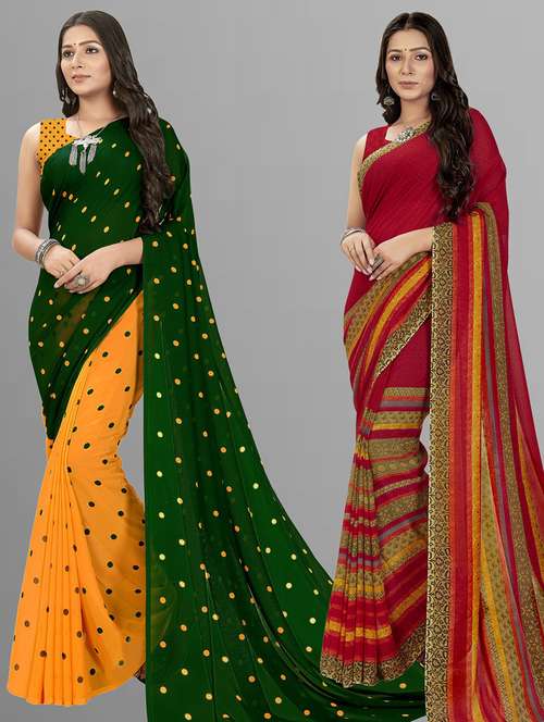 women pack of 2 casual wear combo sarees with blouse - 21474532 - Very Small Image - 1