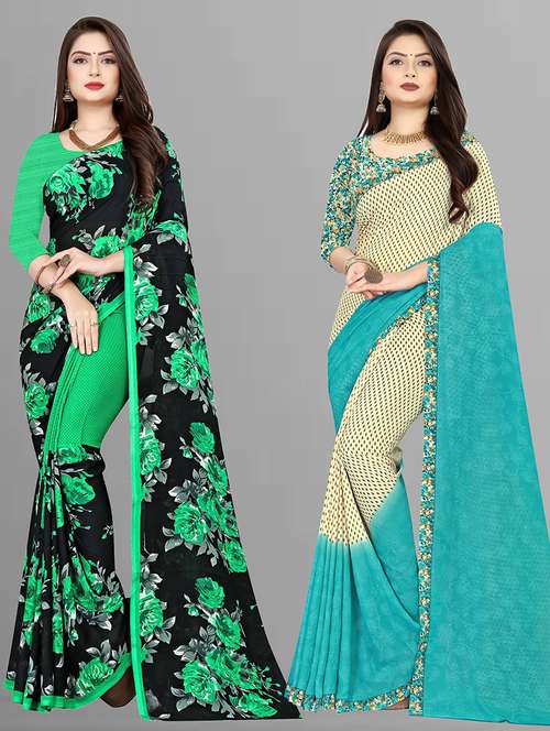 women pack of 2 casual wear combo sarees with blouse - 21474604 - Very Small Image - 1