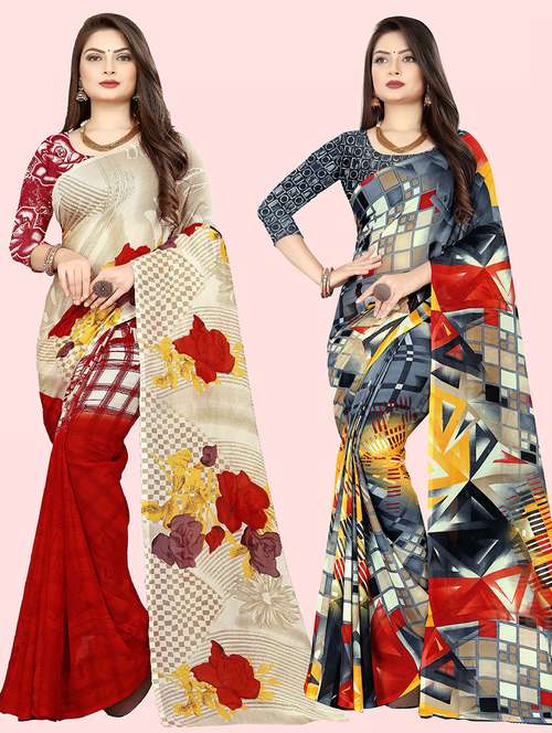 women pack of 2 casual wear combo sarees with blouse - 21474606 - Very Small Image - 1