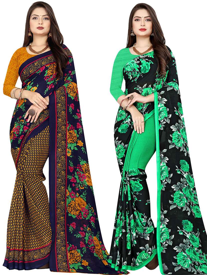 women pack of 2 casual wear combo sarees with blouse - 21474724 - Very Small Image - 1