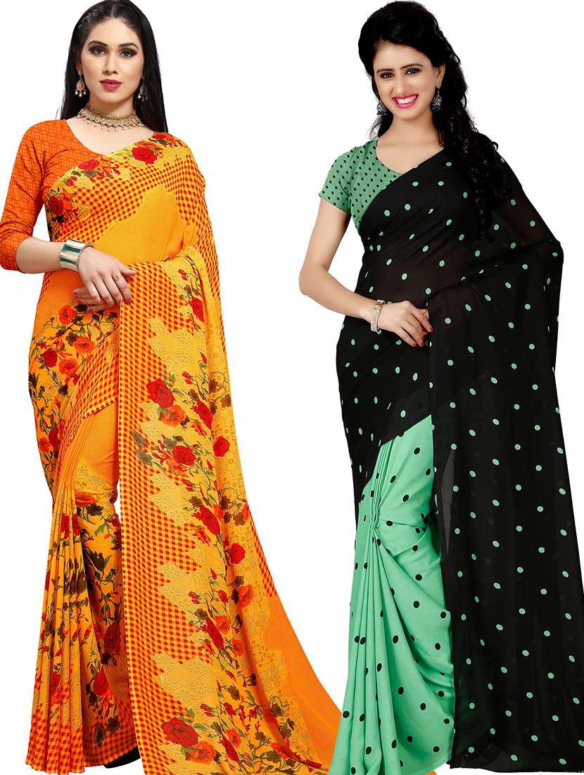 women pack of 2 casual wear combo sarees with blouse