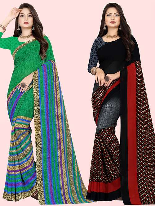 pack of 2 printed casual wear combo saree with blouse - 21474752 - Very Small Image - 1