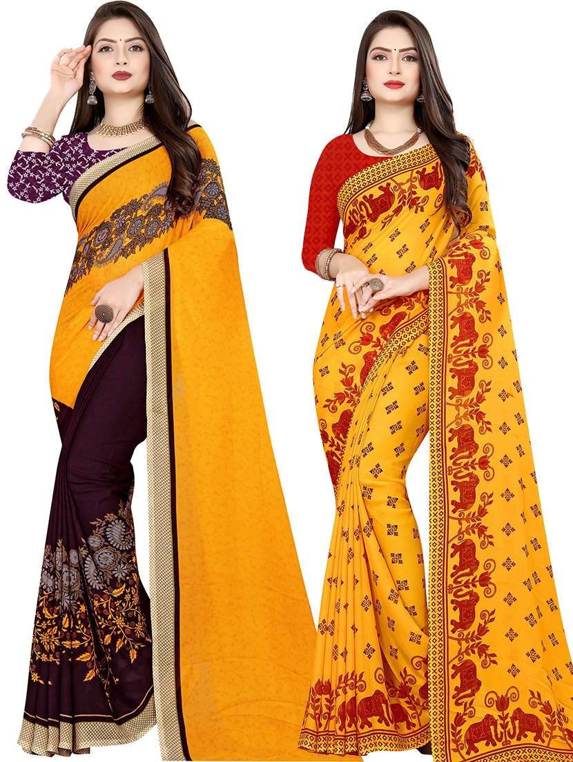 women pack of 2 printed casual wear saree with blouse - 21474755 - Very Small Image - 1