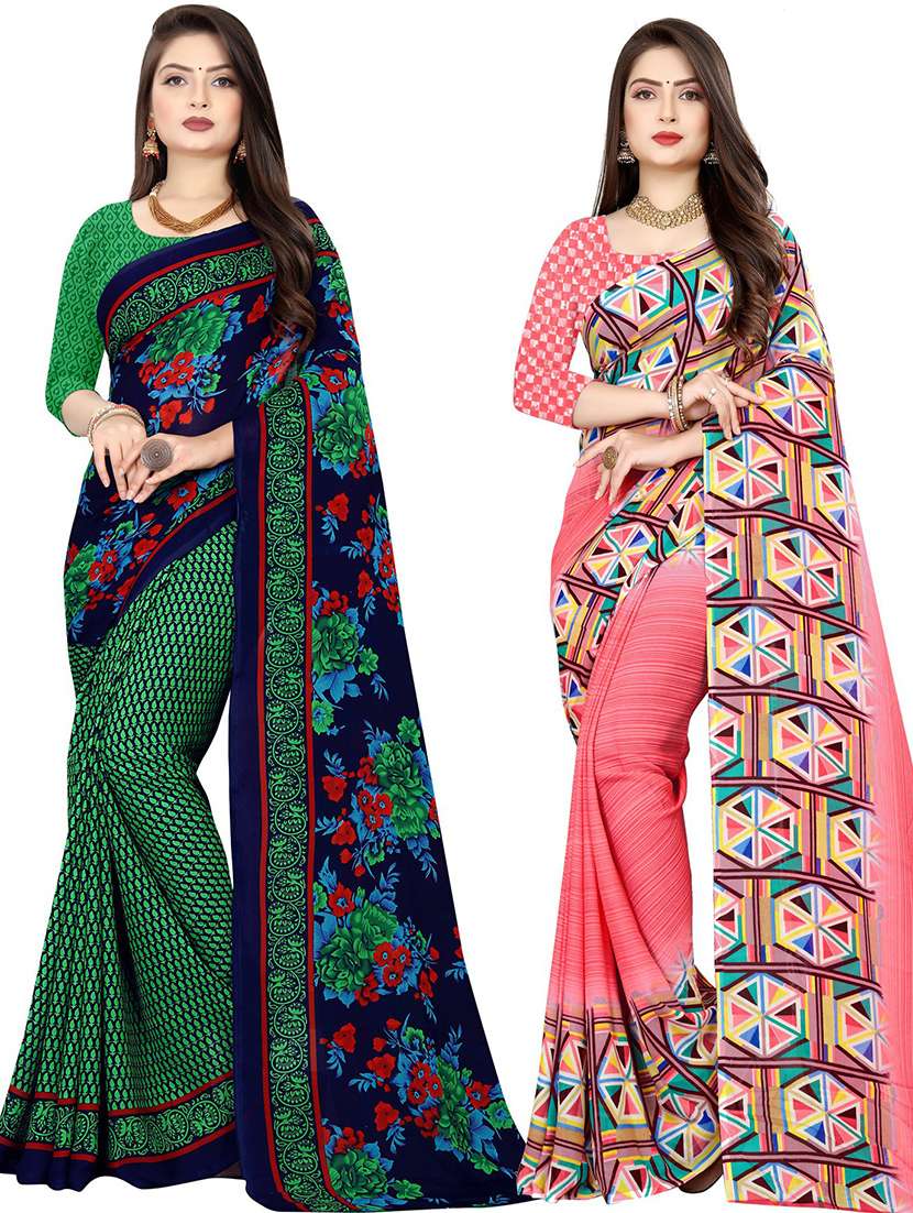 women pack of 2 casual wear sarees with blouse - 21474825 - Very Small Image - 1