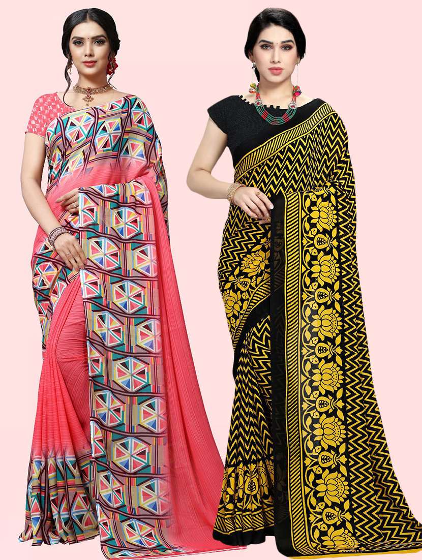 women pack of 2 casual wear combo sarees with blouse - 21474847 - Very Small Image - 1
