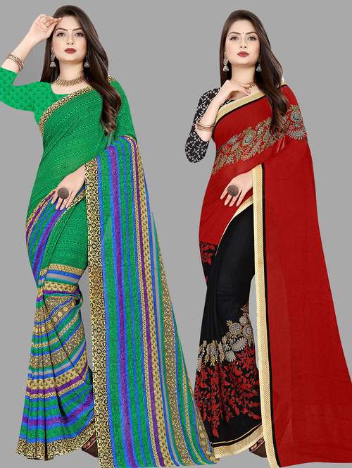 women pack of 2 casual wear sarees with blouse - 21474862 - Very Small Image - 1