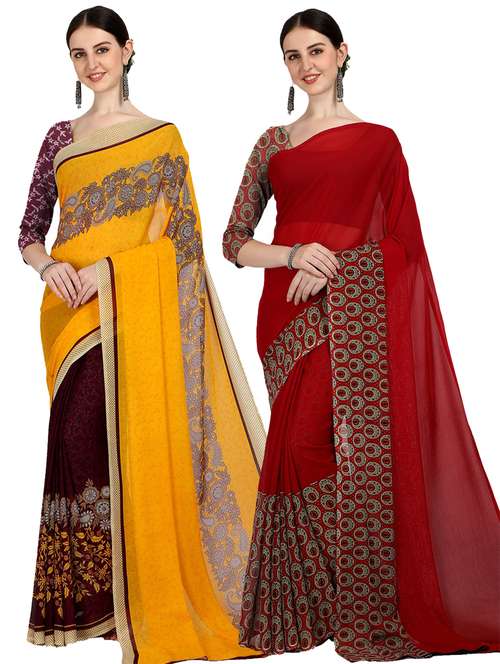 women pack of 2 casual wear combo sarees with blouse - 21474878 - Very Small Image - 1