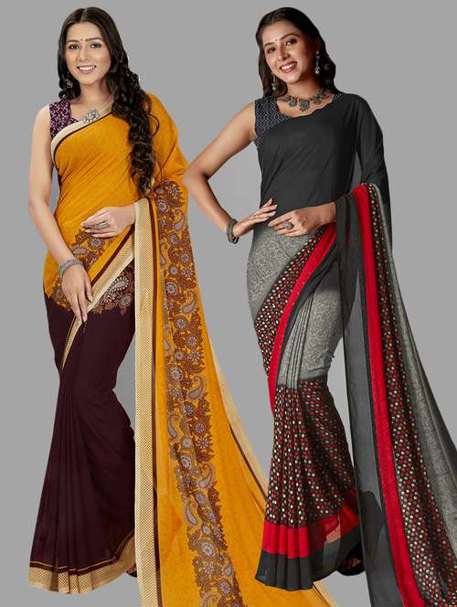 women pack of 2 casual wear sarees with blouse