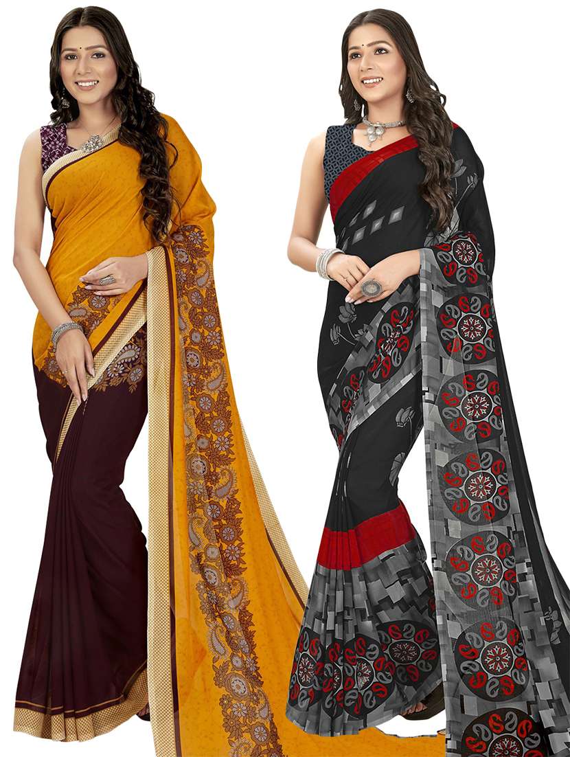 women pack of 2 casual wear combo sarees with blouse - 21475184 - Very Small Image - 1