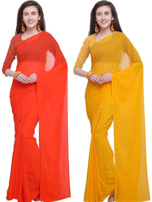 women pack of 2 casual wear combo sarees with blouse - 21475194 - Very Small Image - 1