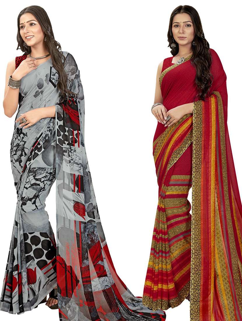 women pack of 2 casual wear combo sarees with blouse