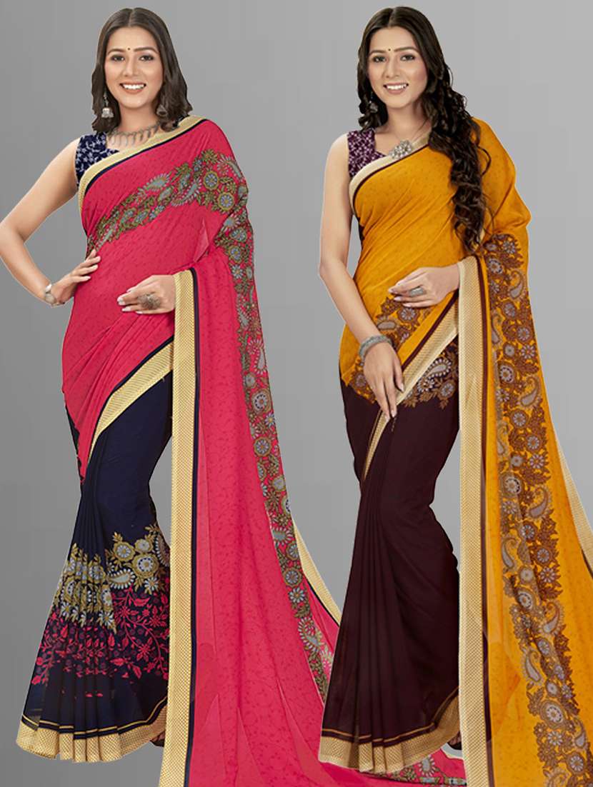 women pack of 2 casual wear combo sarees with blouse