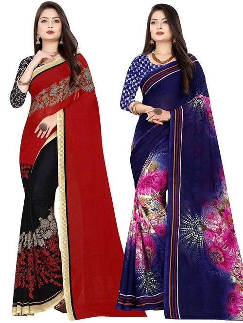 women pack of 2 casual wear combo sarees with blouse