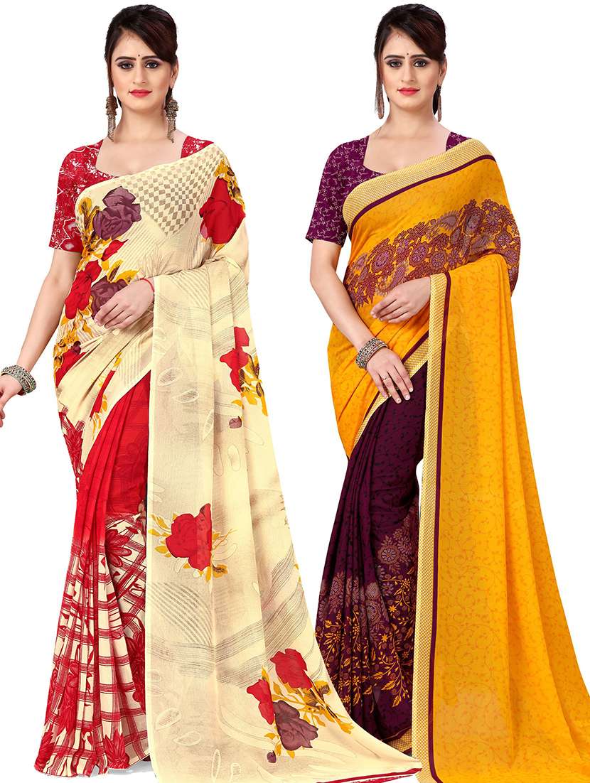 women pack of 2 printed casual wear saree with blouse