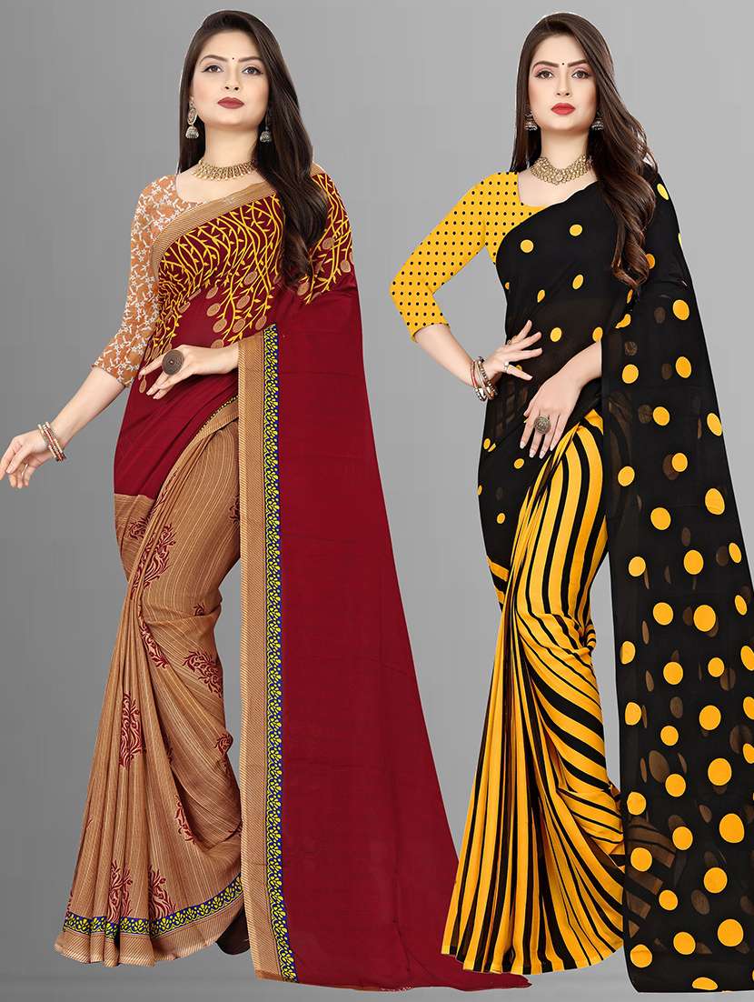 women pack of 2 casual wear combo sarees with blouse