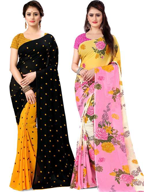 women pack of 2 printed casual wear saree with blouse