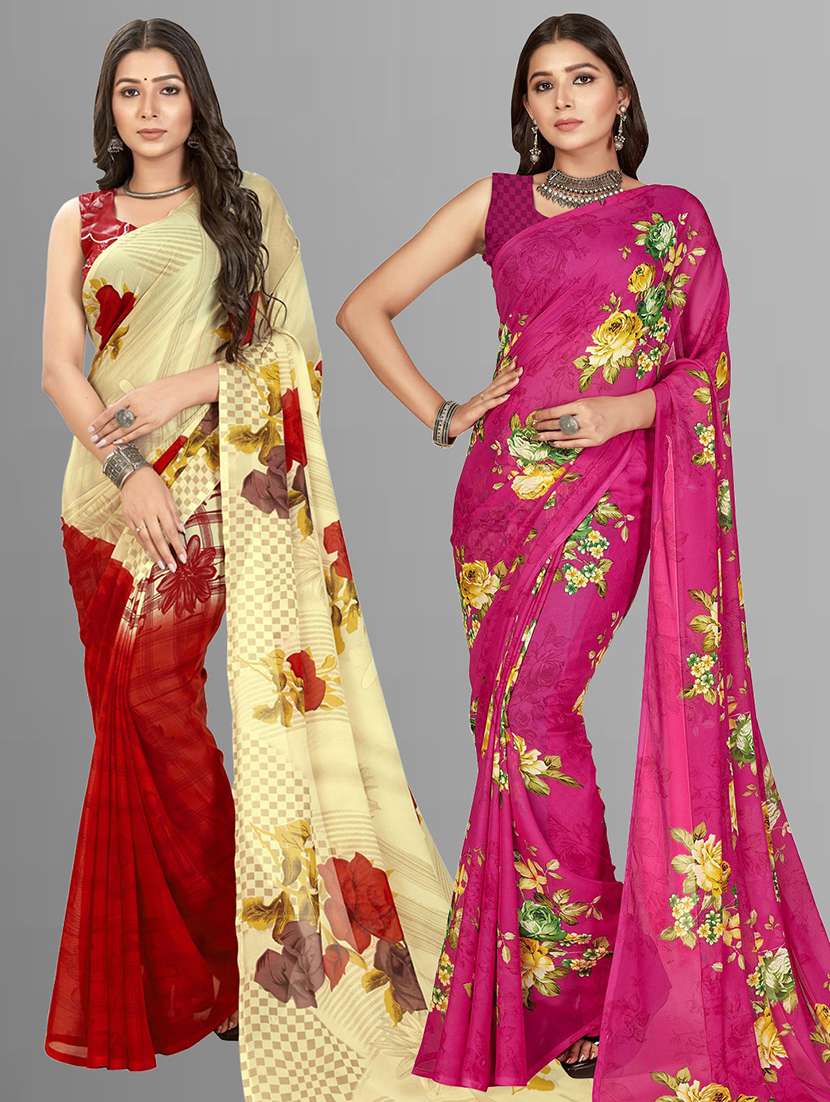 women pack of 2 casual wear combo sarees with blouse
