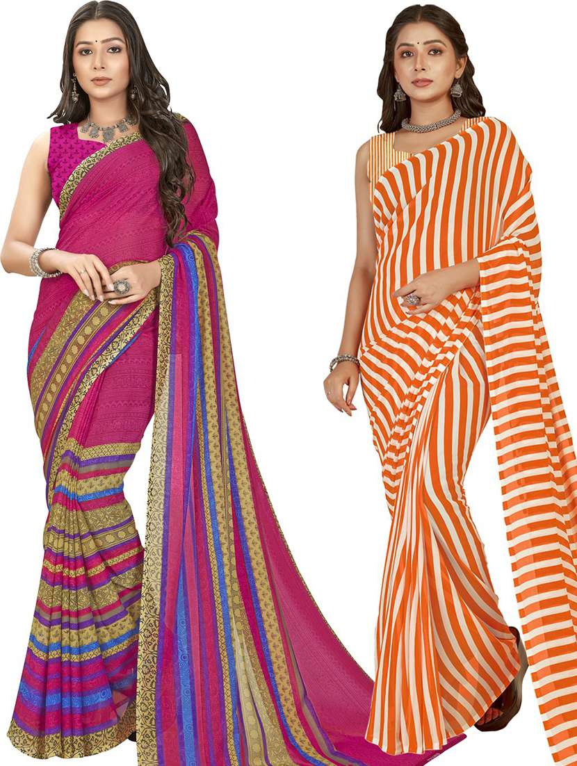 women pack of 2 casual wear combo sarees with blouse