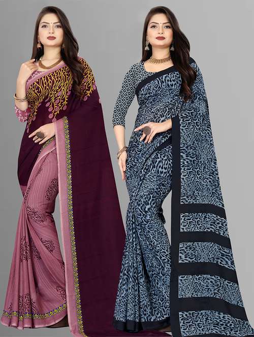 women pack of 2 casual wear combo sarees with blouse - 21475571 - Very Small Image - 1
