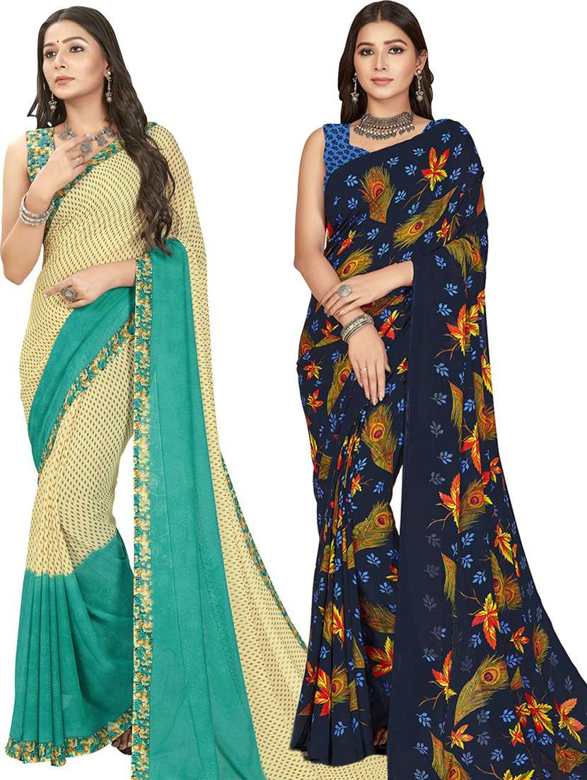 women pack of 2 casual wear combo sarees with blouse