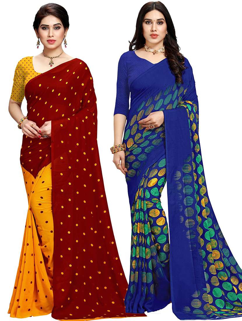 women pack of 2 casual wear combo sarees with blouse