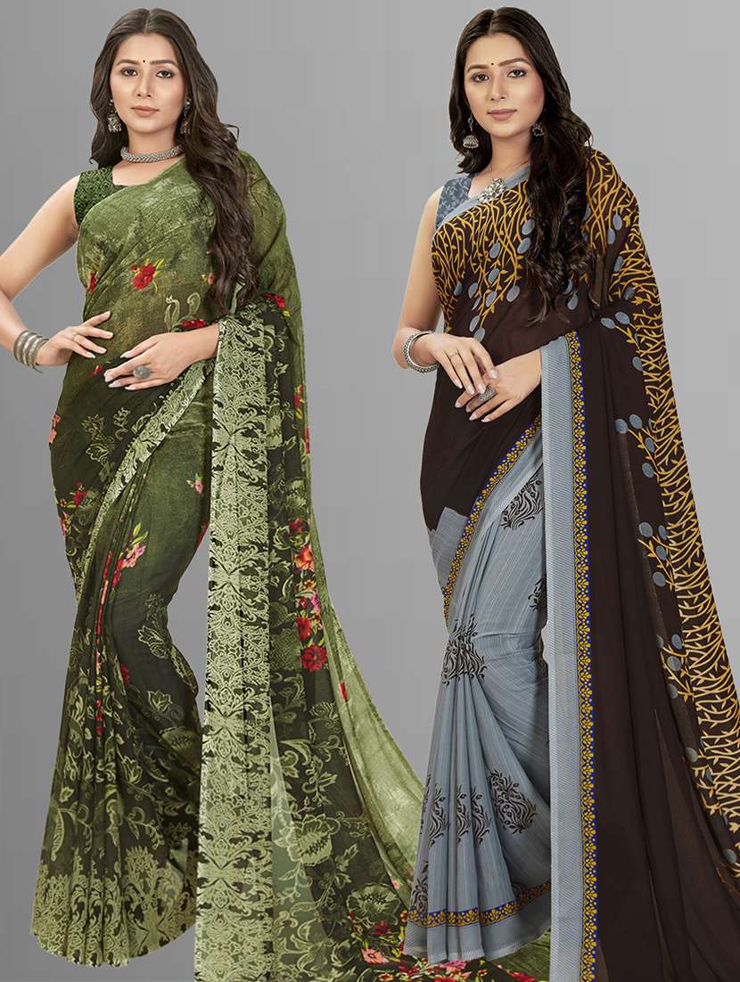 women pack of 2 casual wear combo sarees with blouse