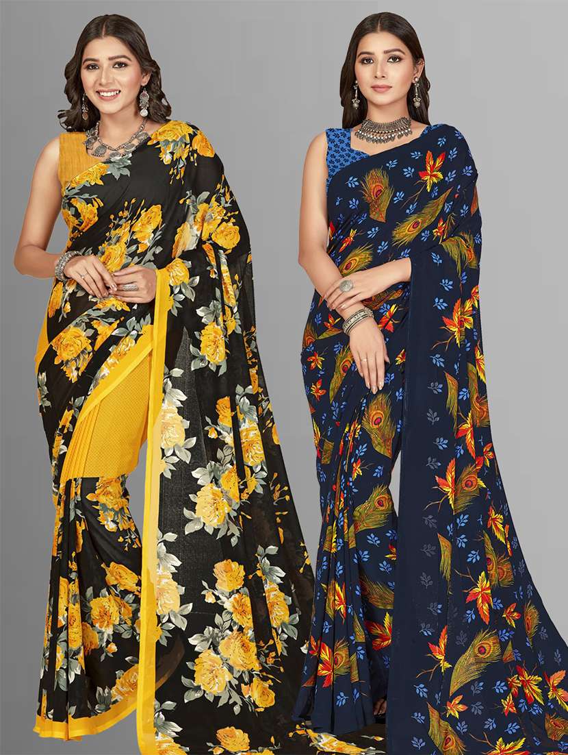women pack of 2 casual wear combo sarees with blouse - 21475721 - Very Small Image - 1