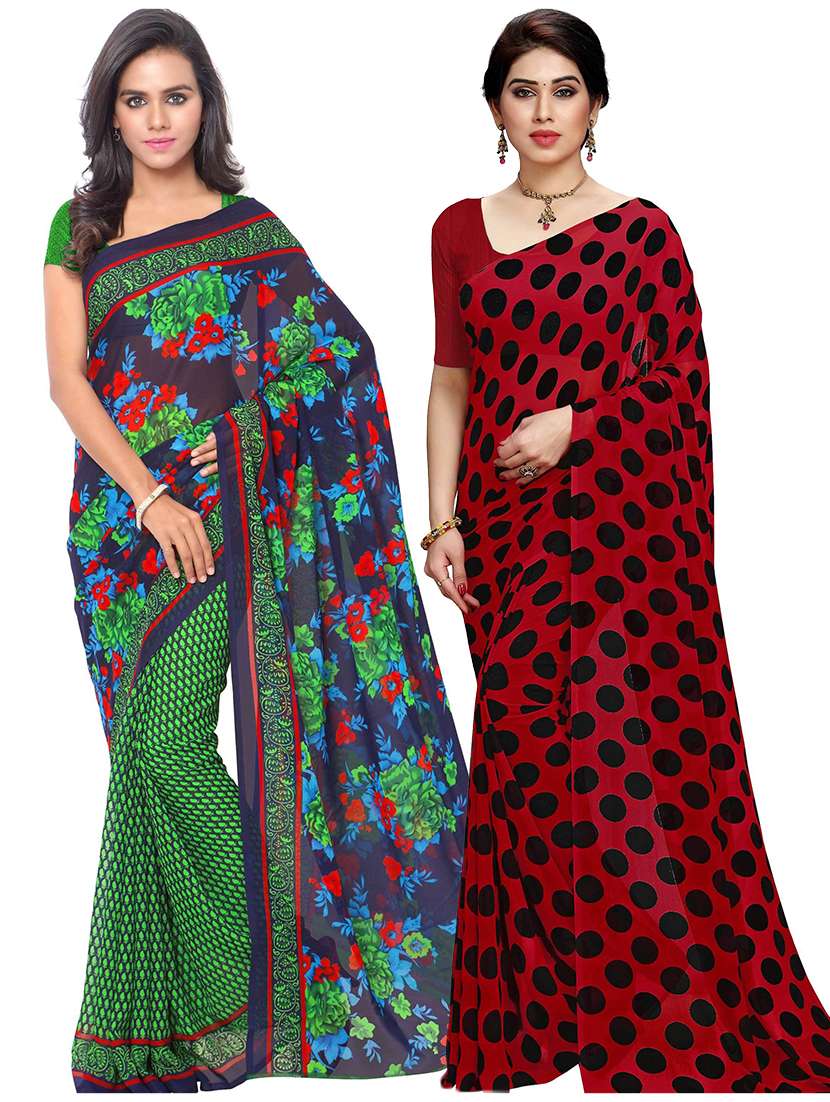 women pack of 2 casual wear combo sarees with blouse - 21475791 - Very Small Image - 1