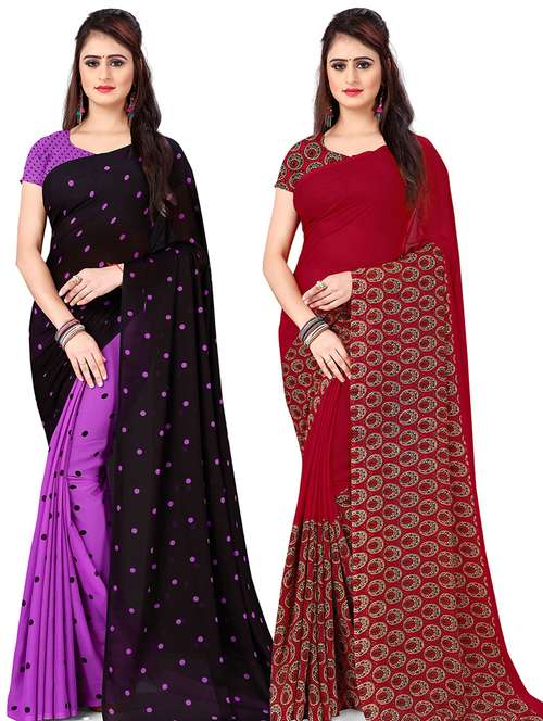 women pack of 2 printed casual wear saree with blouse - 21475934 - Very Small Image - 1