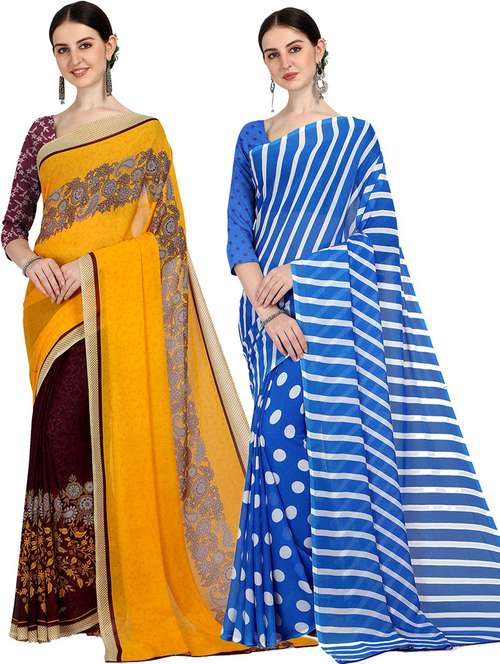 women pack of 2 casual wear combo sarees with blouse - 21475951 - Very Small Image - 1