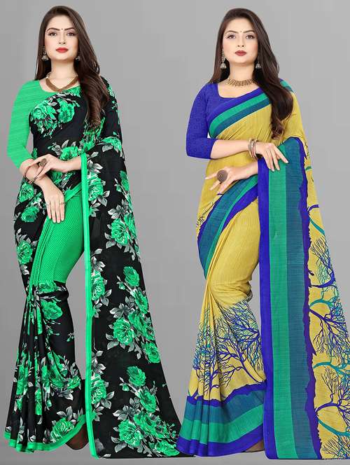 women pack of 2 casual wear combo sarees with blouse