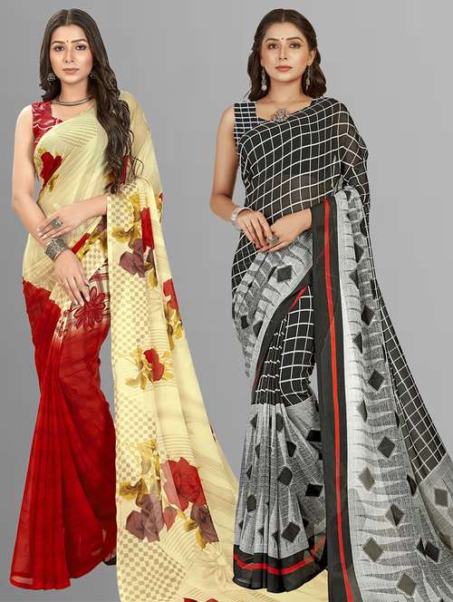 women pack of 2 casual wear combo sarees with blouse - 21476045 - Very Small Image - 1