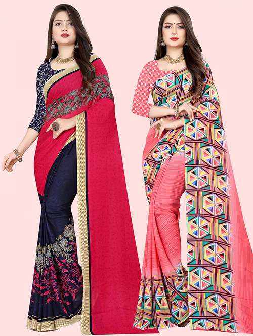 women pack of 2 casual wear sarees with blouse - 21476128 - Very Small Image - 1