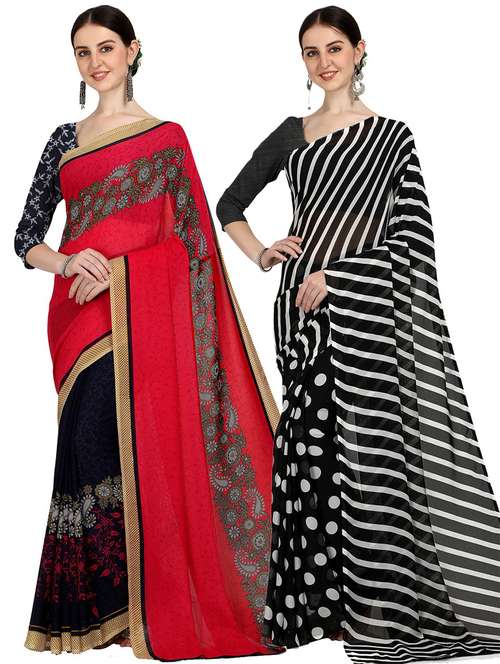 women pack of 2 casual wear combo sarees with blouse - 21476208 - Very Small Image - 1